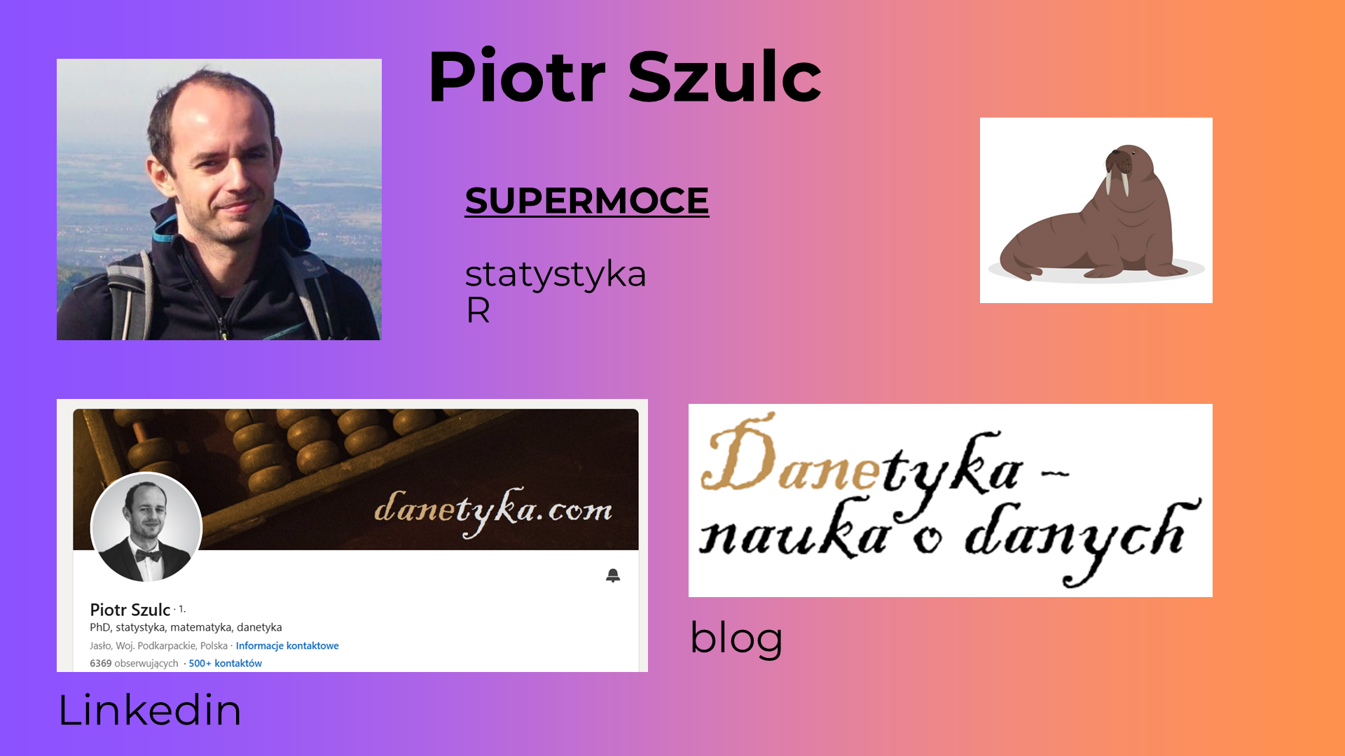 Piotr Szulc siedzi w analizie danych nie od dzisiaj. Ma szeroką wiedzę z zakresu matematyki i statystyki. Przez kilkanaście lat wiele widział i zdobył ogromne doświadczenie. Jego supermocą jest statystyka i to co najciekawsze – jej praktyczne i życiowe zastosowania.